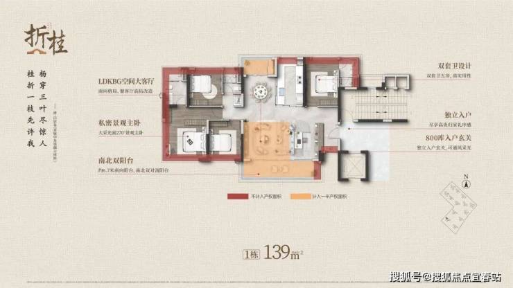 约 139 方:LDKBG 一体空间|800 玄关库|南北对流阳台|270°环景飘窗|灵动双套房可四可五房