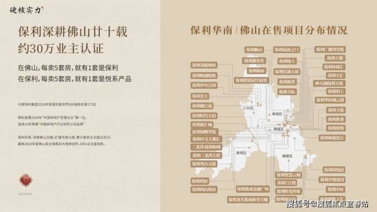 保利发展华南公司,2005 年落子佛山千灯湖,保利深耕佛山二十载匠心钜作,超 30 万业主认证,佛山首个【瑧悦】系升级之作,传承悦字系新中式销量+质量口碑。