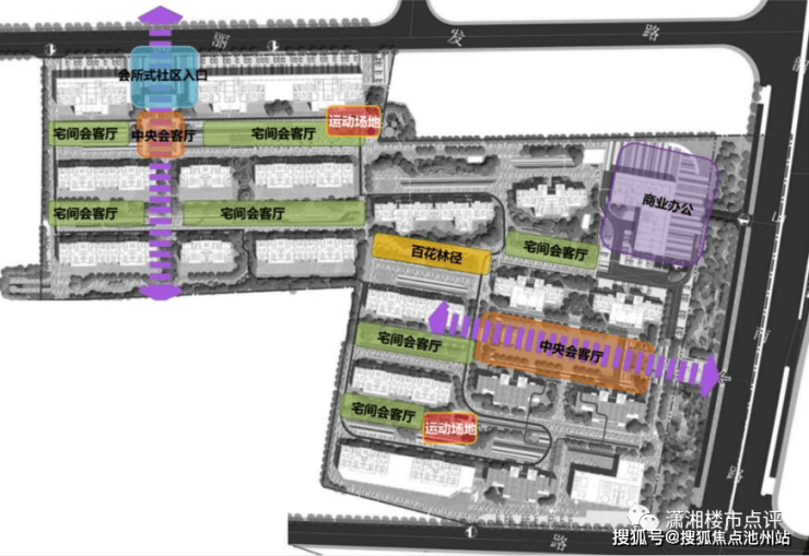 保留天然台地地势,打造内部景观轴线。京盛参详北京大观园,以约8000㎡中心花园为首,内五园布局银杏大道、樱花烂漫、一叶知秋、芬芳馥郁、玉堂富贵等不同景观区域;外五园规划李、桃、橘、梨、梅五重花园,在外收藏四时美景,在内珍藏四季硕果