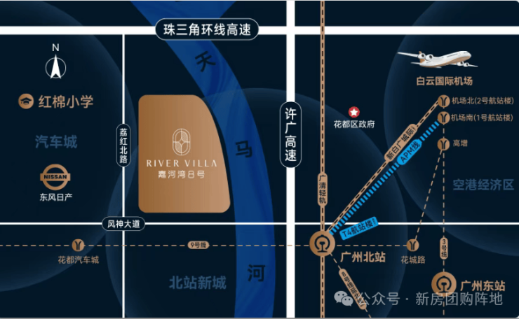 位踞白云机场+广州北站唯一空铁联运枢纽,约400亿规划建设空铁+免税店双驱动的北站新城核区位。