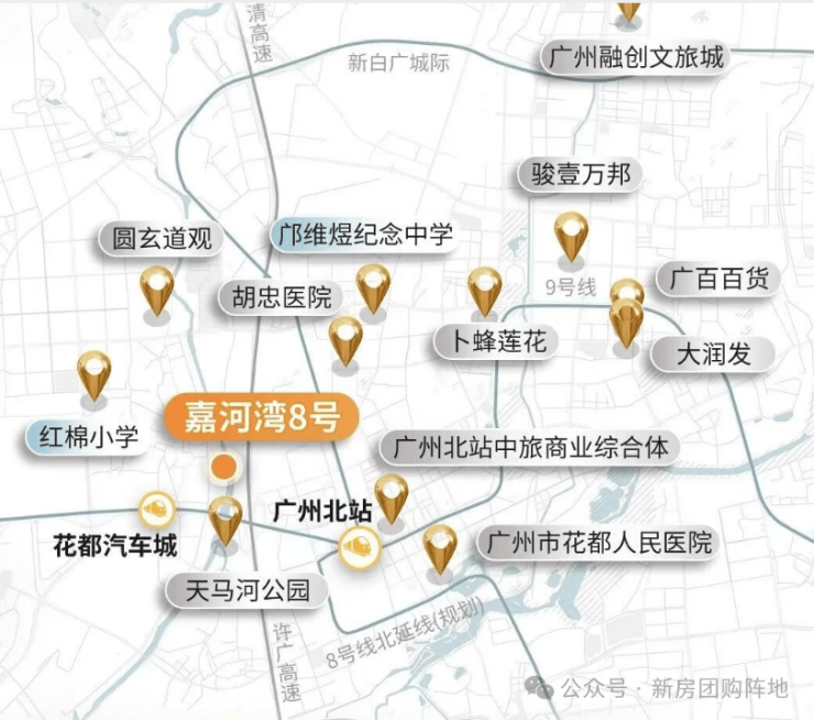 · 医疗:约1.8km胡忠医院、约2km广州市花都人民医院