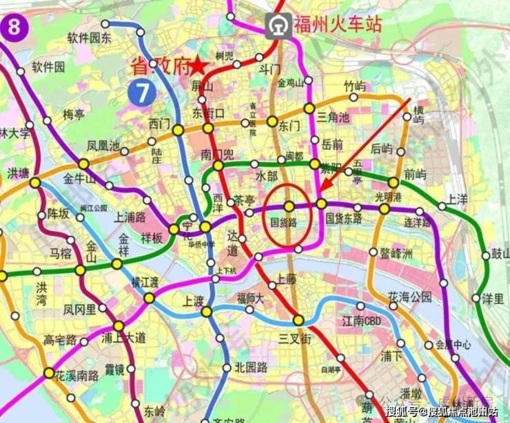 出让公告显示,福州宗地2023-43号位于台江区五一中路与国货西路交叉口西北侧,补充公告明确该地块周边将规划建设地铁8号线“五一南路站”。
