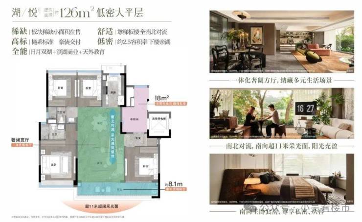 建面164平四房三卫,约16.9米南向采光面,四开间朝南,算是个飞机户型,36平的大主卧。