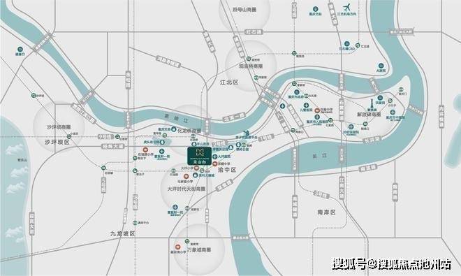 ▌1个超级极核踞守重庆城市中心与五大商圈(解放碑、时代天街、杨家坪、沙坪坝、观音桥)物理圆心,半径3公里覆盖80%城市顶配资源;