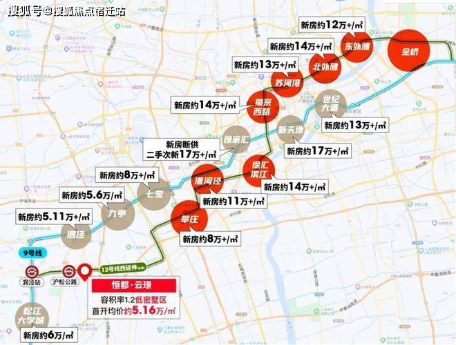 从全市格局来看,12号线可谓是上海的黄金线路,漕河泾、徐汇滨江、南京路、苏河湾、北外滩、东外滩均是上海寸土寸金的CBD,价格早已超过10万大关。而与项目相隔4站的莘庄(七莘路站)目前已经超过8万/㎡,相比之下容积率1.2均价5万出头的恒都·云璟完全能成为12号线沿线高精尖人群的改善置业目的地!