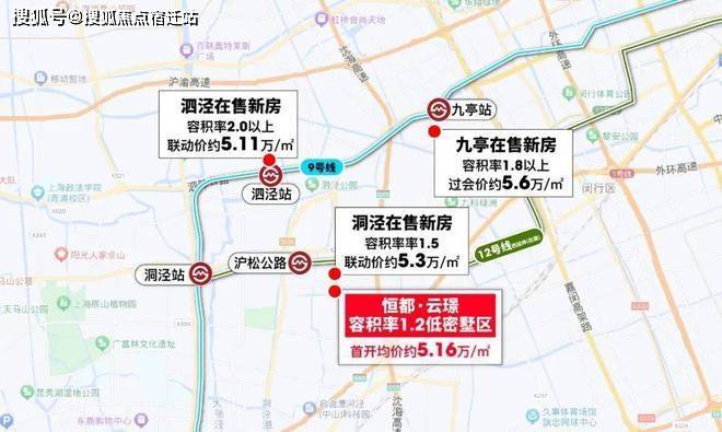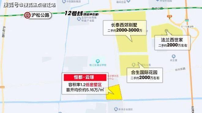 12号线西延伸沪松公路站旁(在建中),容积率仅约1.2的恒都·云璟今日开启认购!主推建面约91㎡洋房和建面约150-160㎡别墅,首开均价约5.16万/㎡!