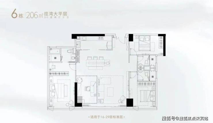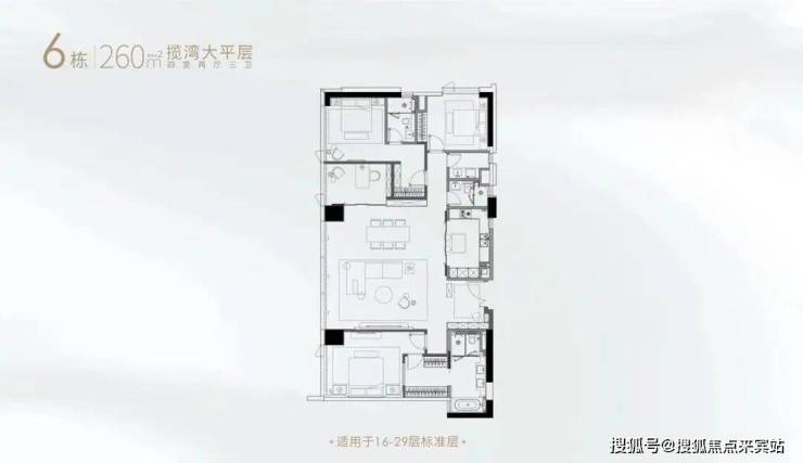 6栋南向一线揽江大平层 (16-29层)01户型260㎡02户型261㎡