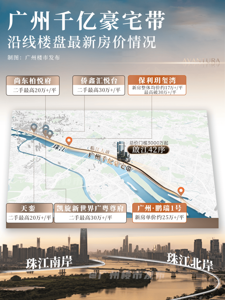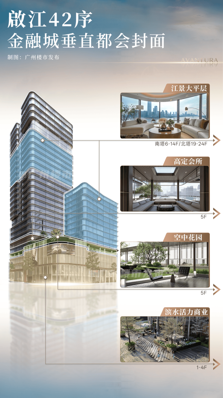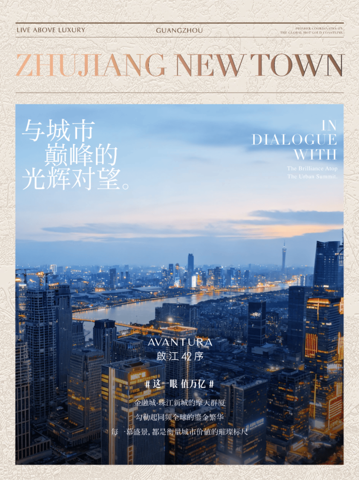 Live Above Luxury——与时代前进的脉动共振与城市巅峰的光辉对望私藏江心上的自然诗意尽展珠江沿岸城景万象 头排瞰江,谨此42席由此打开城市全貌视野这一眼,值万亿啟江42序·AVANTURA珠江至贵一英里·42席无界拥江建面约318-380㎡广州2025先锋生活啟新作品
