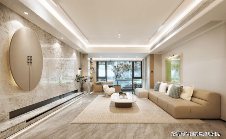 客厅对于家来说,不止是空间的延伸,更是全家活动的高频场域。如何放大公区空间的通透感与尺度感成为重中之重。