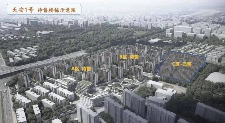 根据天安1号的公布方案来看, 将分为A、B、C三个部分,共建设48幢,最高13层的住宅楼,整体容积率为1.94,建筑密度为30%、绿地率35%。