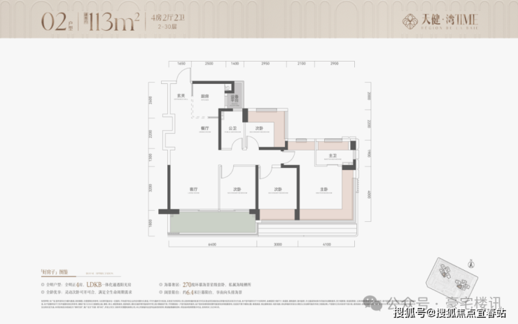 02户型,建面约113㎡,4房2厅2卫(下图)