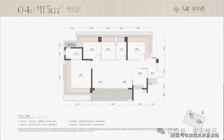 04户型,建面约115㎡,4房2厅2卫(下图)