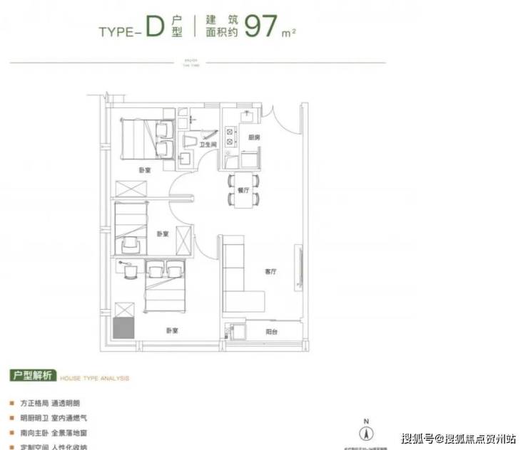 建面约97㎡的户型为三室一厅一卫的布局,次卧可灵活打造成儿童房、书房等空间,既能满足自身居住需求,也能让客人来家小住,可以照顾到生活的各方面细节。