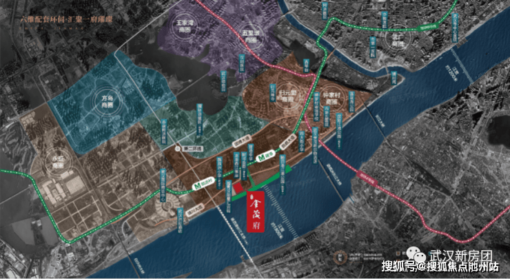 交通三桥:从区位图上看,横跨南北的三座大桥长江大桥、鹦鹉洲大桥、杨泗港长江大桥。三道:我们的项目北靠汉阳三条重要的主干道晴川大道、鹦鹉大道、国博大道,南临临江路。您开车出行,沿向东约5分可达汉阳未来的归元寺商圈,向西约5分可达国博中心。一轨:项目紧临地铁6号线前进村站,项目到地铁站直线距离约400米,步行5分即可到达。6号线能够实现与地铁2号线、3号线、4号线、8号线、12号线、16号线(规划)