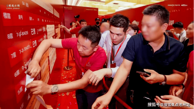 客户排队验资、现场摇号选房、选房区人头攒动、销控区快速翻红……