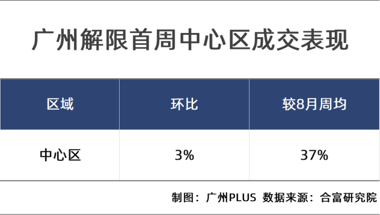 根据合富研究院数据显示,广州解限首周,全市成交总体上涨1%,其中中心区周环比上涨3%,较8月周均上涨37%,稳中向好。