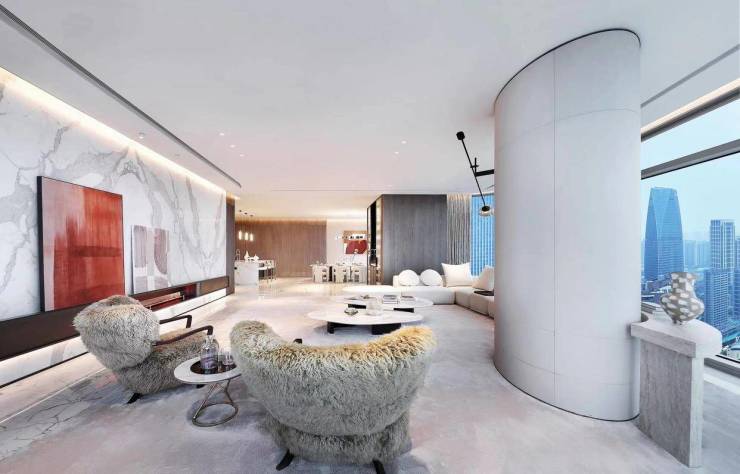 空间尺度:3.8米层高、270度落地玻璃、近200㎡L型奢享会客厅,搭配全套意大利进口家具,兼具大气与优雅1。