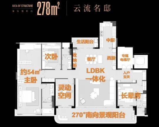 【产品规划】 在产品规划方面,西派尊府也下足了功夫。设计团队通过对空间布局、生活功能分区等元素的深入研究,打造出建面约278-282平方米的平层户型。