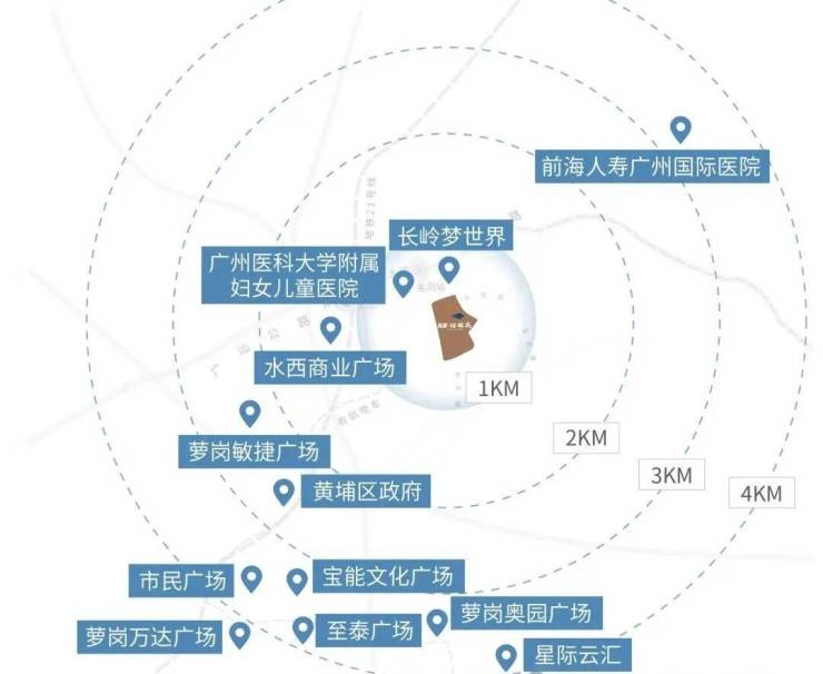 项目直连黄埔区有轨电车1号线长岭居小学站590米,2站接驳地铁21号线长平站,可一站换乘地铁6、7号线。