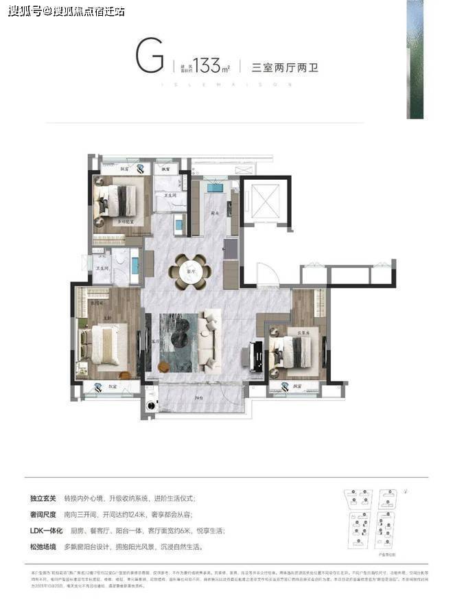 除此之外,3房2卫多飘窗的设计更是让这个户型的视野延展更上一层楼。