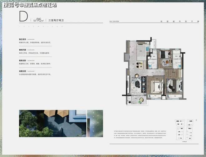 建面约95㎡3房2卫三开间朝南,整体的南向尺度感非常出色。