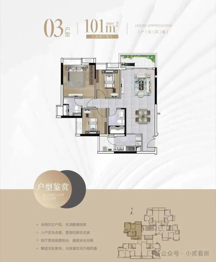 住宅只有1栋,26层高,2梯6户;减去1-5层的商业、公建配套等,住宅货量也就120多套,准现楼,建面约75-129㎡共5种户型全部做了实体样板间。珠江海珠里售楼处电话✅:400-982-8802