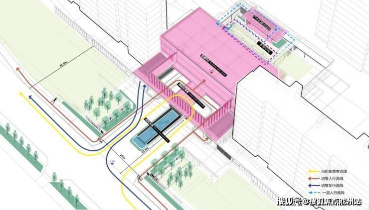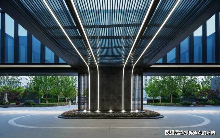 项目之初,景观、建筑与室内三专业紧密配合,在空间尺度、交通组织、材料使用等多方面达成共识。落客区模糊建筑与景观的界面,用极简的线条贯穿雨棚与景墙,归家的仪式感得到延续。