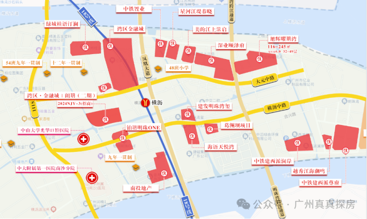 地块临近广澳高速、南沙港快速路,距离现状地铁 18 号线横沥站 350 米,旁边是规划中的 54 万㎡横沥 TOD 综合体。