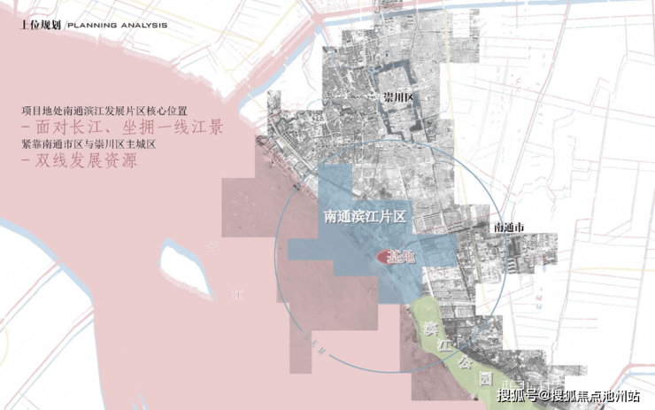 项目位于南通新城区滨江发展区,为滨江板块首宗商品房地块。2018年南通市政府与招商局集团签订合作协议,计划在南通主城滨江地区生态修复城市更新方面开展合作,打造集时尚休闲、滨江旅游为一体的江海邮轮港和南通外滩;地块2019年年底挂牌,同期招商蛇口与南通城建集团先行成立合资公司,合资公司于2021年1月31日底价竞得该宗地块,后续开发,南通城建集团纯财投,招商蛇口全权操盘。