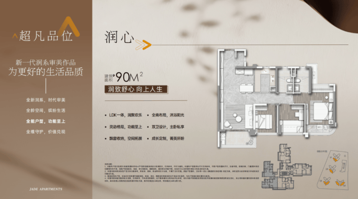 建面90平三房两卫,全屋南北通透,四开间朝南,3个卧室朝南,LDK一体化,可打通次卧做到大客厅。