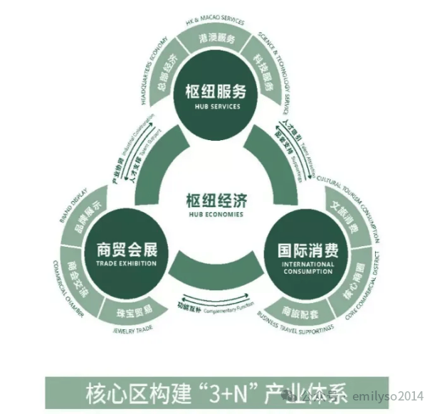 在产业方面,广州南站核心区则是构建“3+N”产业体系,覆盖大湾区1小时生活圈。为企业落户提供良好经济生态,将高技术产业留下来