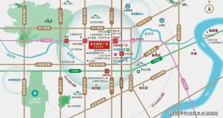 【生态配套】 中山公园、长风公园、上海动物园 真如古镇、曹阳公园、金沙绿地公园 项目地属长征板块,该板块人们较先想到的就是近年兴起的真北商务圈。不仅商业,它在房产发展方面也可以说是一个“后起之秀”,规划定位是"低密度低层加多层和小高层的混合型绿色园区"。经过多年的发展,多种风格的建筑并存,该板块现已逐渐形成了自己独特的居住环境和风貌。相比普陀其他板块,长征的楼盘房龄相对较新,社区环境较好,成为了年轻白领们首次置业的好选择。长征板块位于普陀区西南部,中环外环之间,紧贴嘉定区,一般来说是指以长征镇为中心,沪宁高速以南、真北路以西、苏州河以北的广大区域,东接规划中的普陀区真如城市副中心和长风现代服务区。长征板块早期是市区动迁居民择居佳地,随着人口大量外移中环,板块内的新建楼盘纷纷拔地而起。就目前而言,长征板块依托梅川路附近成熟的生活配套和轨道交通13号线,优势明显。本案又紧邻近铁城市广场商圈,位置可谓长风生态商务区与市级商圈中环CBD的黄金交叉点长风门户!