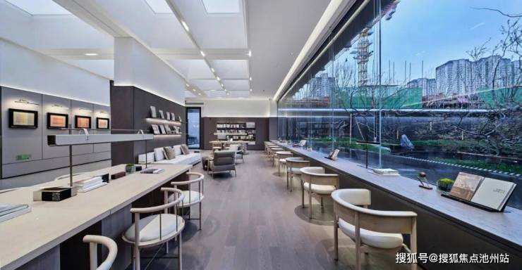 以《西园雅集》为空间情绪蓝本,秉承“将社交置入静谧”的哲学,在三进归家的东方游园过程中,以镜面水景嵌套四季酒店式度假场景:约2000㎡水域倒映天空树影,水下茶席与大面积落地玻璃交织对话“曲水流觞”,复刻北宋美学生活的极致和雅致,以都市度假场景营造,为2848位业主,在繁华都市中造一座自然岛屿。