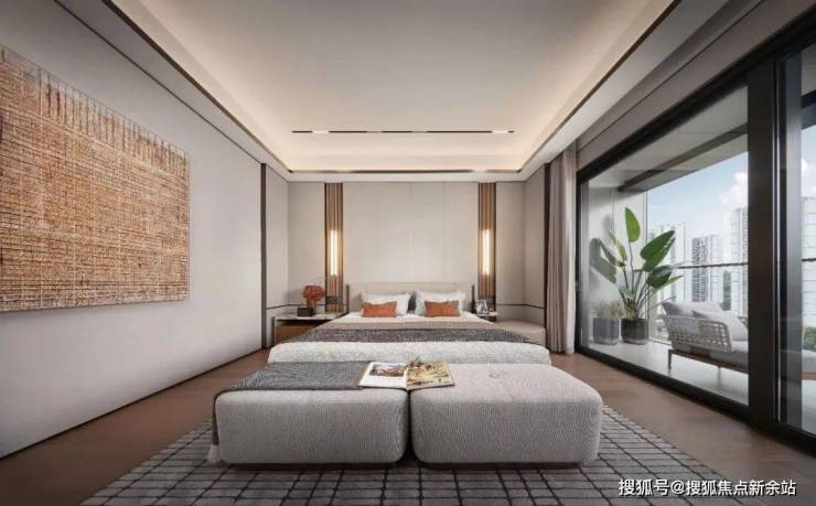 主卧也配置了瞰景阳台,闲暇时刻,与爱人依偎在观景飘窗旁,一杯红酒,闲话密语,繁城万象尽私藏。