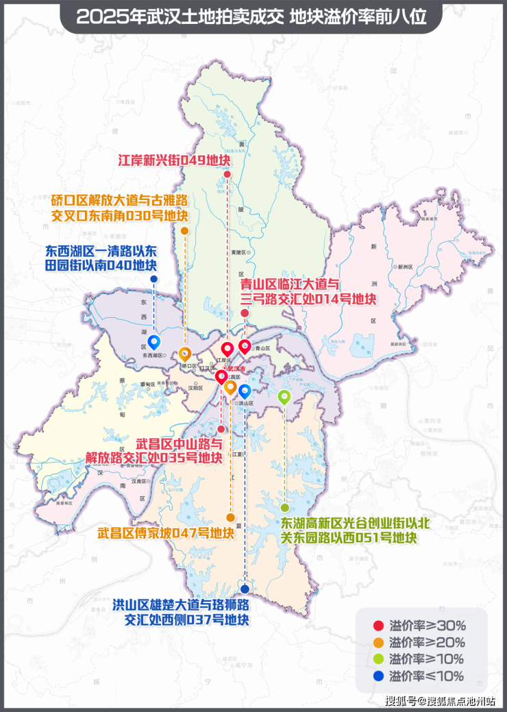 2025年武汉土地拍卖成交地块溢价率前八位示意图。(湖北日报全媒记者 杨文漪 段雨欣 制图)