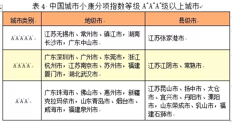在中国地级市全面小康指数前100名和中国县级市全面小康指数前100名中,小康分项指数A+A+A+级以上城市有33个。