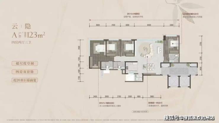 123平实得161平(注意这是建面实得,套内实得大概按照85%来计算,约137平),得房率131%。这很夸张,123平可以做到4房3卫横厅户型,且2个套房,客厅开间还能做到6.4米。