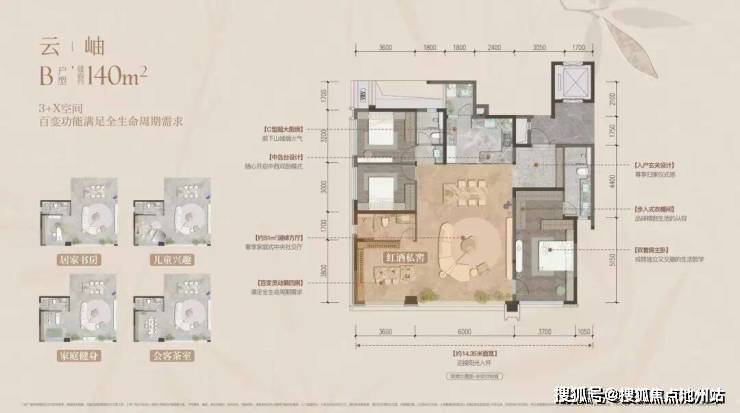 特别是123平和140平户型,并没有其他四代住宅的大露台,而是直接赠送在了里面,解决了隐私性的问题,同时保障房间的宽阔尺度,这挺好。