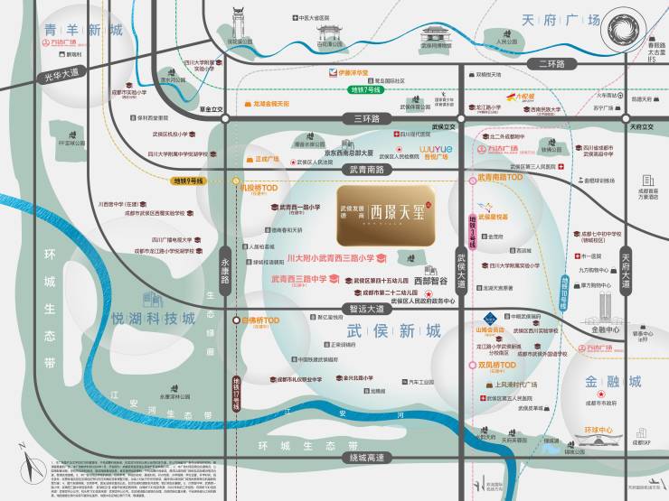(拟引进)成都七中墨池书院(在建,预计投入约6亿)、川大附小武青西三路小学、成都市二十二幼、第四十五幼儿园等优质教育资源,享受K12菁英教育体系