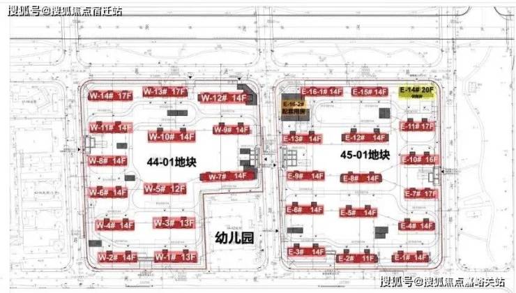45-01地块拟建16栋11-17层高层住宅,其中E-14#为保障房。