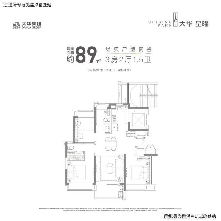 所以虽然是约89㎡的紧凑型3房,但这个户型还是有空间做了一个1.5卫的设计,保证了主人的私密空间,也避免了早高峰用厕的尴尬。