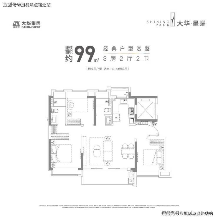 另外,3房2卫5飘窗的设计,保证了主人的私密空间,也保证了室内的收纳空间。