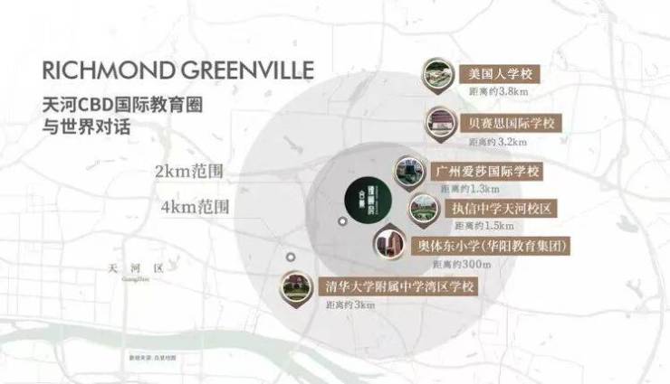 国际名校林立:贝赛思国际学校、美国人学校、广州爱莎国际学校等