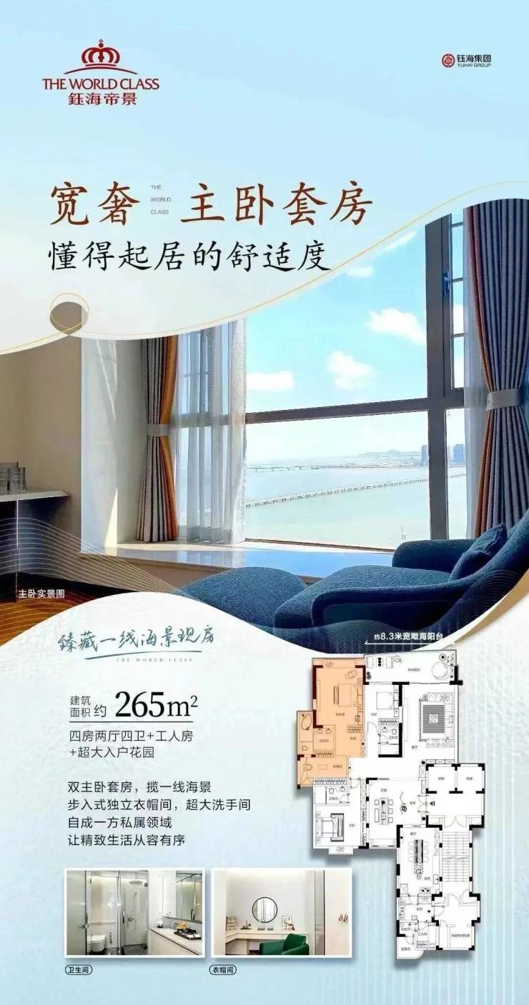 钰海帝景,以30层的雄姿,矗立在吉大交于拱北的半岛区位,这里海湾弧度大、海水蔚蓝、海天一色,与澳门对望,有绵延的青山美景,与大海间只有婀娜多姿的情侣南路,实为港珠澳核心的海景豪宅。