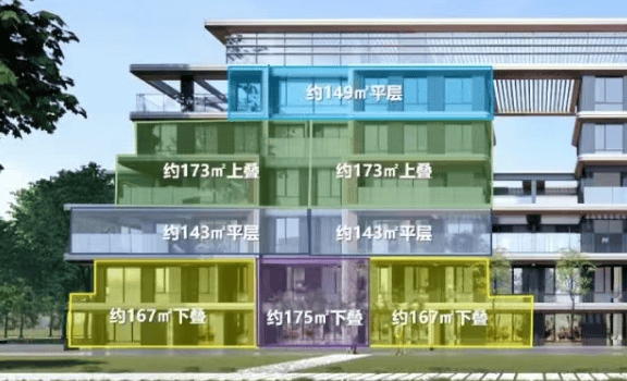 项目推出143-175㎡的叠墅/平层产品,南向山景视野,出户即享滨水碧道。
