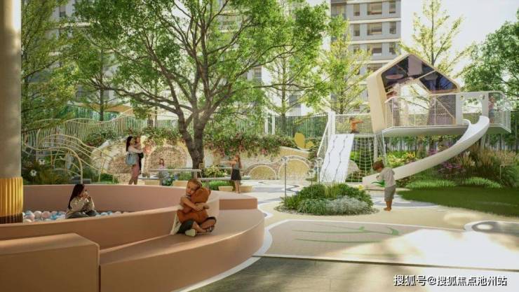 绿城·柳岸鸣翠于环境呈现上匠心独运,打造架空层多主题设计,巧妙融合童玩、健身、阅读、社交等功能,构筑起丰富多元的社区“泛会所”。