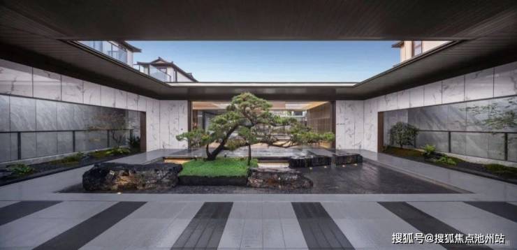 以宋代传奇名画 《西园雅集图》为设计蓝本,借鉴卡洛·斯卡帕的设计手法,通过诗意表达与精美细部,合院入园区域打造三进院落、四重景观、双中央水院与亭台水榭等当代江南名园胜景,举步之间,礼制家仪,气象万干。