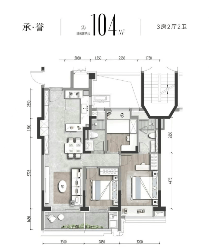 在售建面约90-104-112-119㎡3房