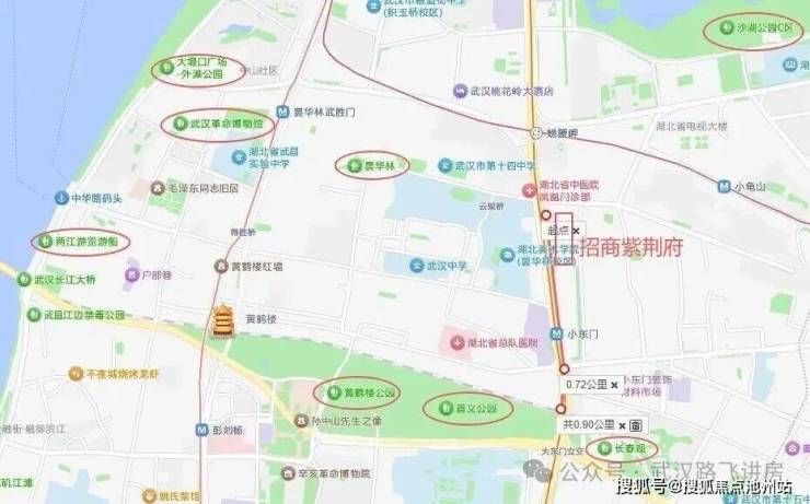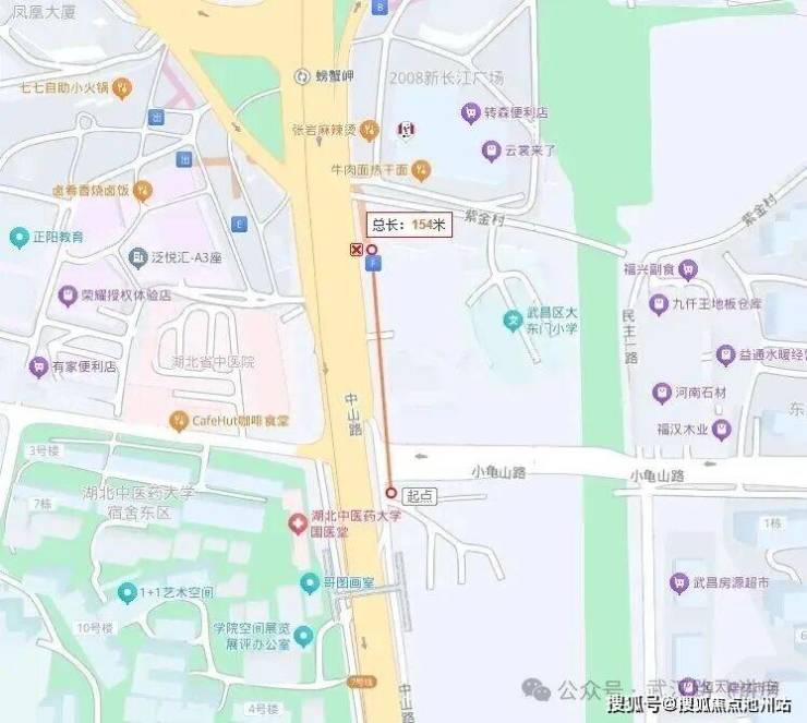 项目位于武昌区中山路与小龟山路交汇处,属于武昌内环。从板块来看,项目属于武昌核心螃蟹岬,沙湖汉街板块直线距离约800米,与中南路直线距离约1.7公里。