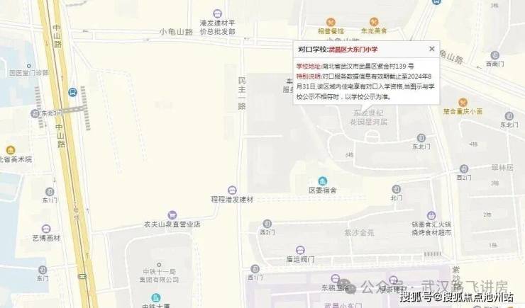 教育:项目规划中包含一所 6 班制幼儿园,可满足业主基础入园需求。根据学区划片,该项目对口的小学为中山路小学紫金分校(其前身为大东门小学),初中则对口武汉市第二十五中。